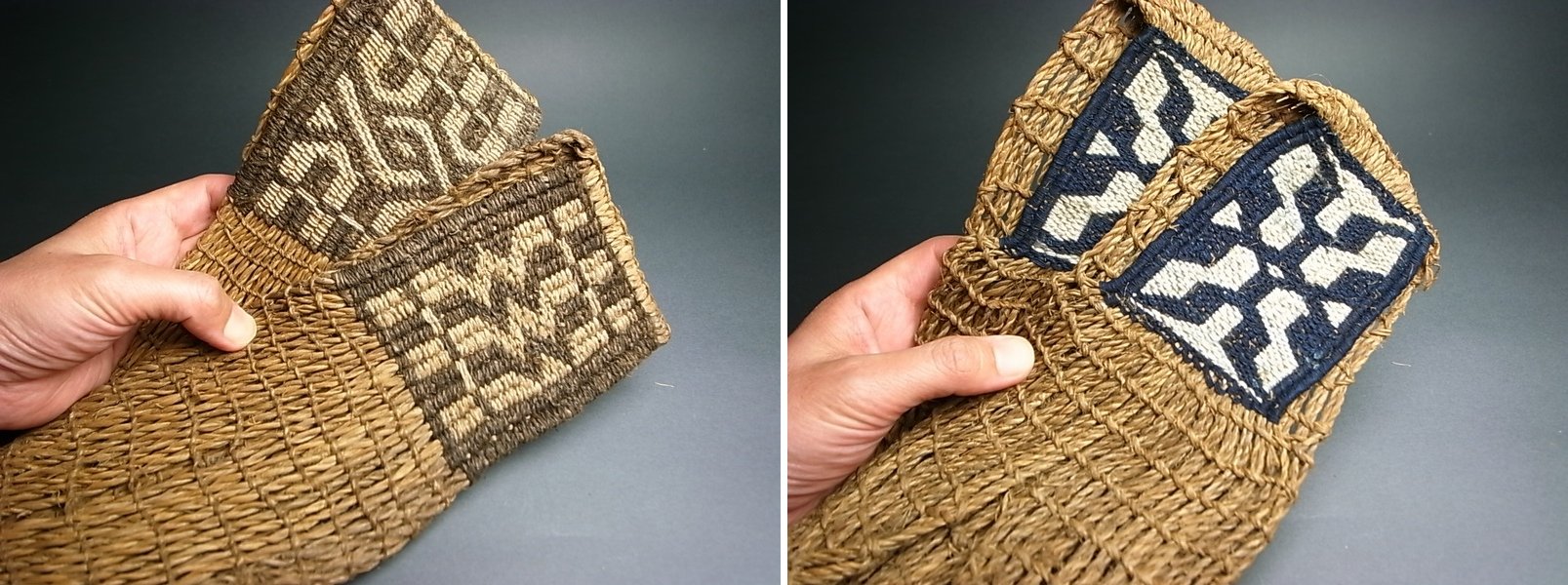 木綿糸での編みこみ刺繍が見どころです。
