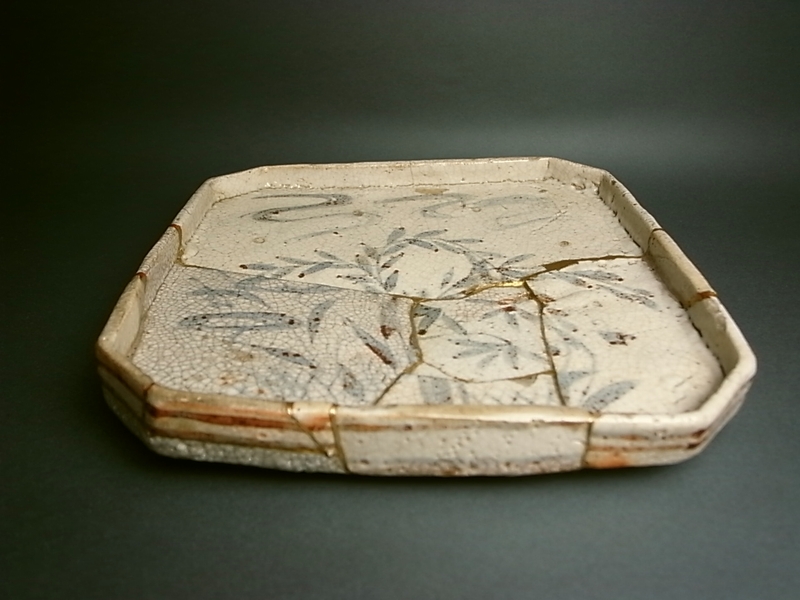 志野の隅切皿。