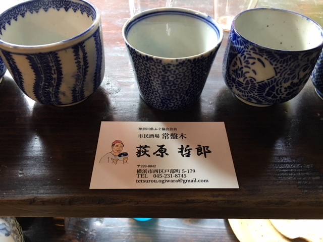 最初は魚が人気の店。 仕入れたばかり、お気にりの盃(初期伊万里折松葉文平盃)を持って参戦。