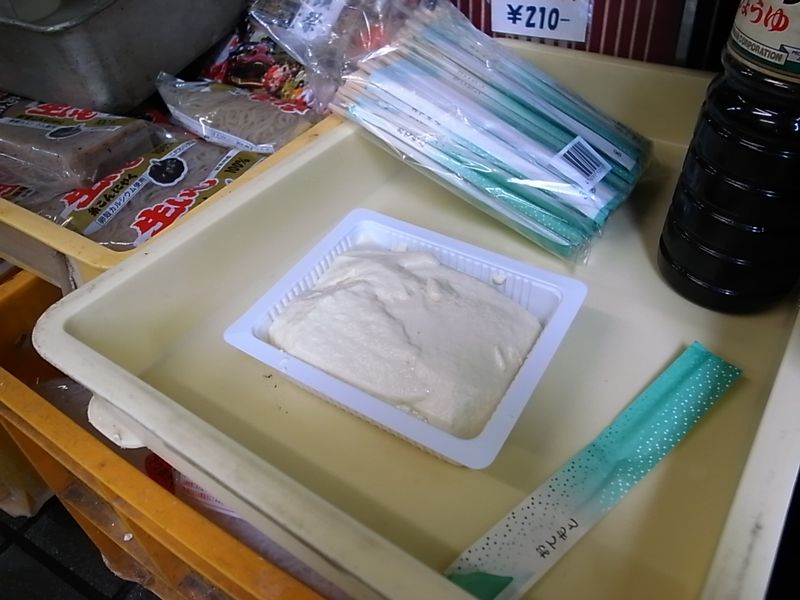 途中、出店のおっちゃんたちが皆同じものをもぐもぐしてるのを発見。 なんだかピン!ときて、と油断なく探りを入れていると、 ヤャッ 参道脇の豆腐屋に、まだ商品が並んでないにもかかわらず皆づかづかと入っていくではないかっ!