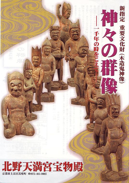 骨董雑誌『小さな蕾』に紹介記事があるのでご覧になった方も多いでしょう。 北野天神千百年大祭のおり、唐櫃の底が抜けて顕れたという十三体の鬼神。 集落の入口や、交差する道の真ん中に置かれ邪気を払う「岐神」にこの十三体の<鬼神>が当たるのでないかと言われています。 穢れを背負った形代は燃されたり、流されたりするのが常でしたから、 平安時代十世紀の像が、こうして今の世に伝わることは本当に稀なことだと思います。