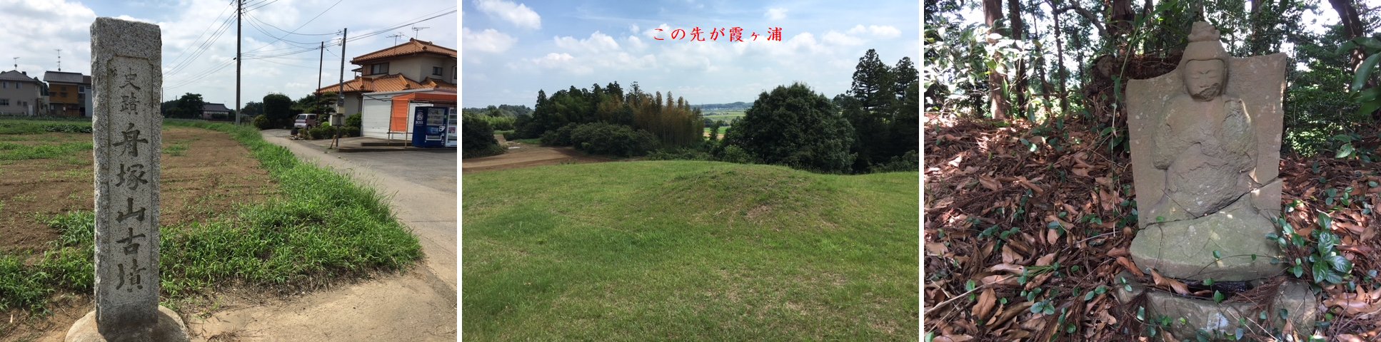 双方の前方後円墳を船に見立て、こちらは霞ヶ浦に乗り出す形(方墳が霞ヶ浦に向いている) なので出舟。 反対を向く舟塚山の方を入舟と呼ぶのだそう。 いつ、誰が付けたか、ロマンチック溢れます。