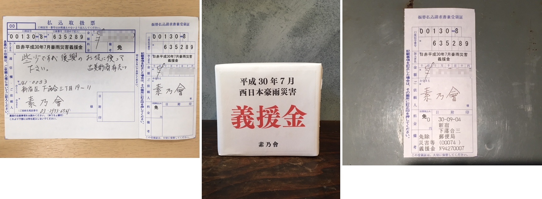 義援金箱をつくり骨董屋有志ということで、些少ですが日赤7月豪雨義援金に寄付してまいりました。