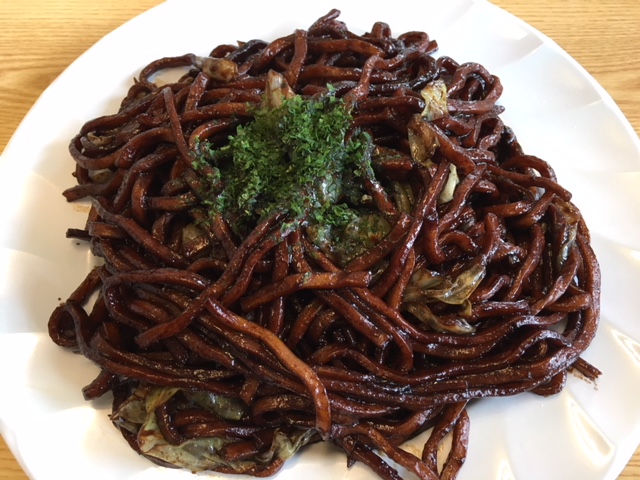 そして、太田といえば黒い焼きそば! 岩崎屋さんのひと皿です。 焼きそば 中 330円!