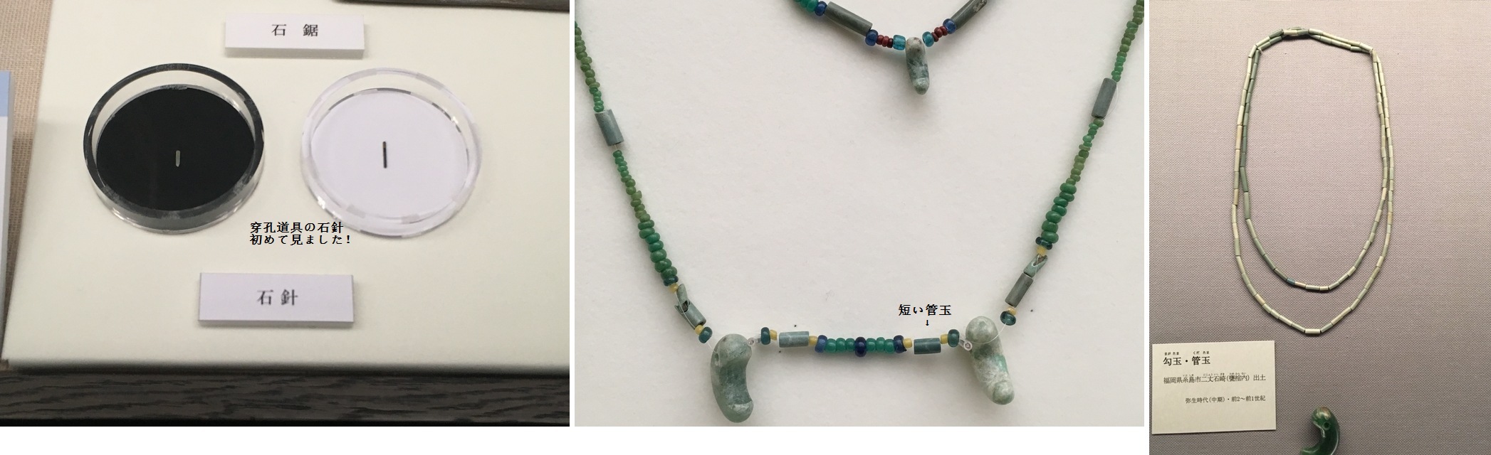 もうひとつ、 A 緑が薄く非常に細い管玉はほとんどが九州かと思っていました。 (東博にある糸島の画像つけました) 会場には鳥取県東伯郡の湯坂遺跡出土の管玉が連になっていましたが、これがまさに「薄い緑で細い管玉」でありました。