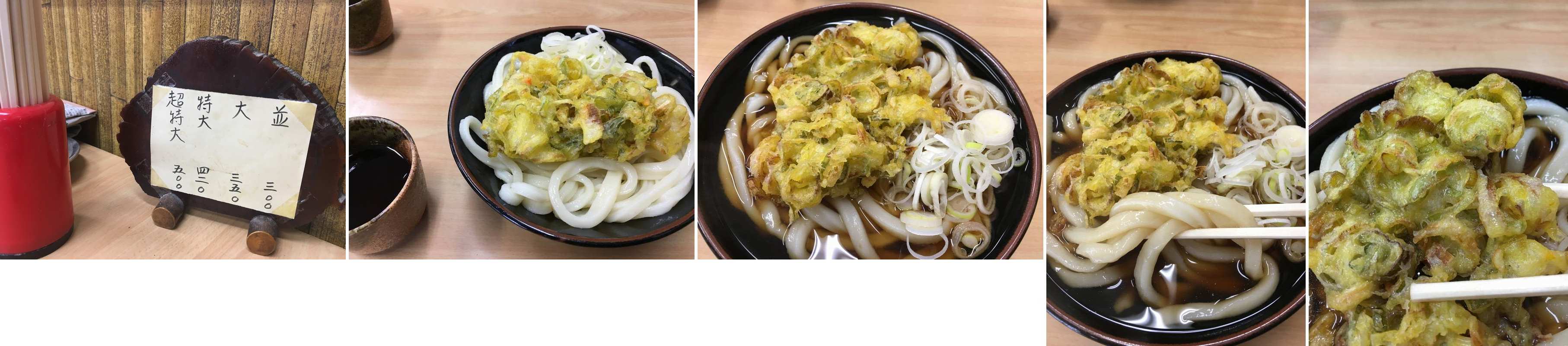 すでに伝説、メニユウはこれだけです。 あとは温か冷たいか。ネギのかき揚げは黙っていても付いてきます。 むろん手打ちですが、埼玉西部の武蔵野うどんのような腰の強さは無し。 むしろ柔らか〜い。 熱、冷頼んでシェアしました。 温ったかいほうが美味しかったですね、ワタクシ的には。 かき揚げにも合うし。