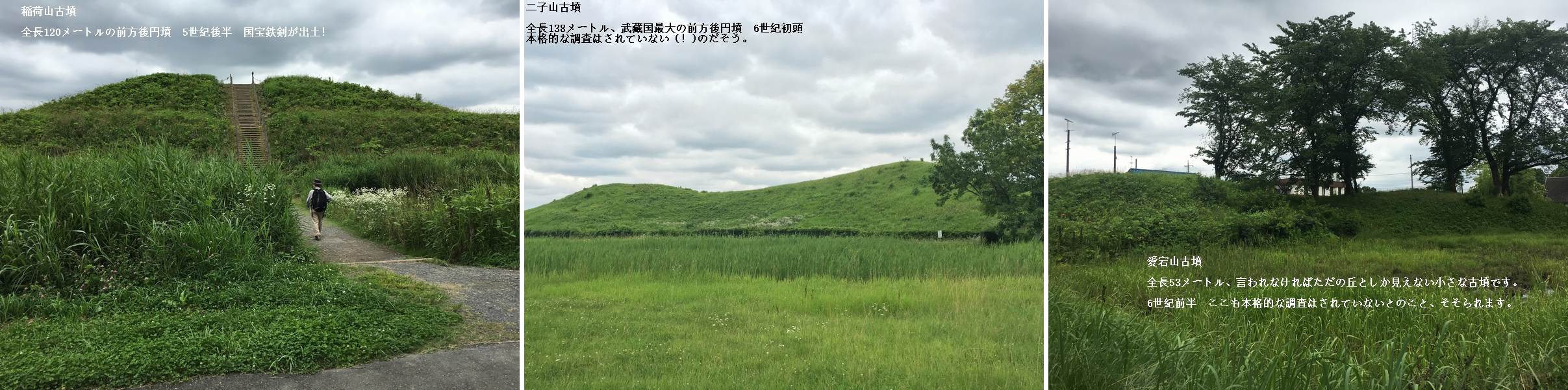 その後は行田の「さきたま古墳群」へ。 広い敷地のなかに九つの古墳が点在しています。 中には国宝の金錯銘鉄剣が出土したことで知られる稲荷山古墳もあります。