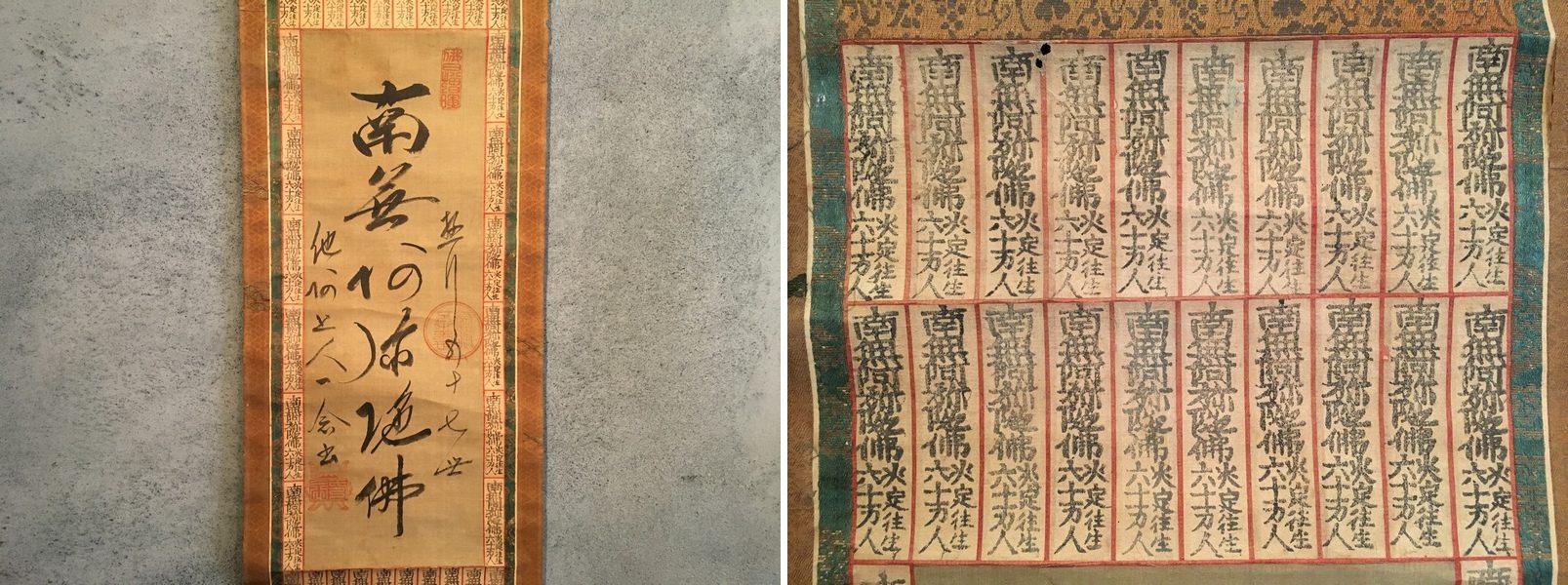 新蒐品に一遍上人の時宗、遊行上人の六字名号を出しました。 遊行上人の名号自体は珍しくないのですが、周りを囲む「賦算札」が一種独特の雰囲気を醸しだしており、 時宗という宗教集団の特異性を象徴しているように思えます。