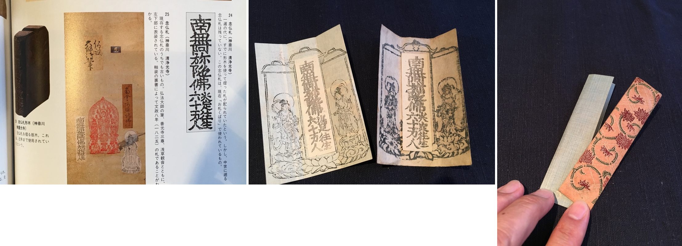 最後は以前も似たものを出しましたが、私の賦算札コレクション。 裸で渡していた札が紙に包まれ、その紙もだんだん上質に、菩薩様まで刷られるようになって。 この版木を探しているのですが、今まで一度もお目にかかったこと無し。 いつの日か!