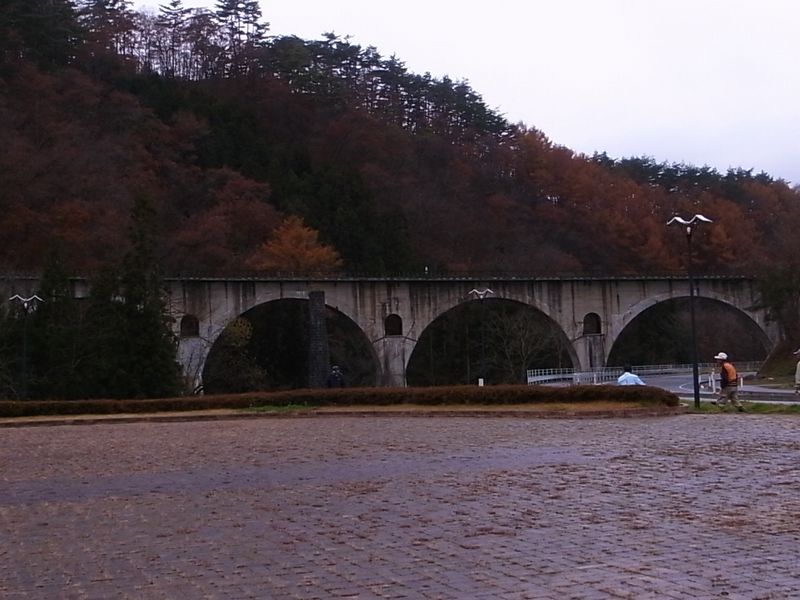 賢治の銀河鉄道のイメージで知られる岩手軽便鉄道の<めがね橋>をくぐり。