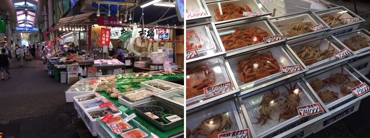 旅好きな人はみな言いますね、「市場が好き」と。 逃避が好きなわたくしも、旅好きであることに間違いはないと思いますので行ってみました、近江町市場。 さすが蟹がいろいろ。定番の金沢麩と近頃凝っている高級手作りかまぼこ買ってみました。 (金沢の蒲鉾は固かった。出汁とともに煮込むといいのだろうけれど、板わさにはちょっと向かなかったかな)