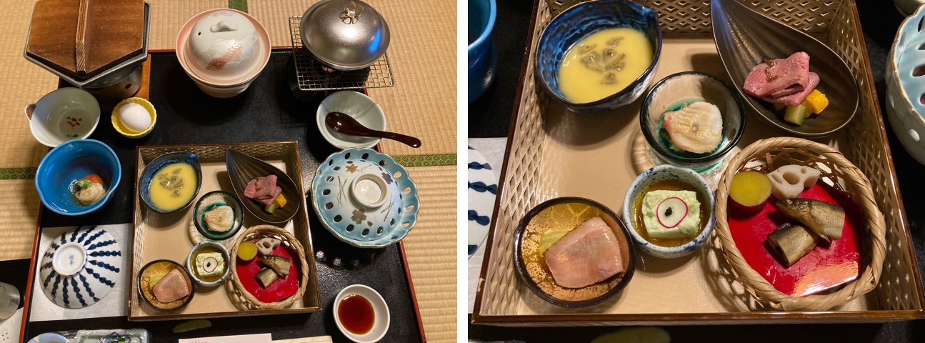 お疲れさんも兼ねて温泉へ。 高級旅館でしたが、さすがこの時期、おこもりプランと称して布団の上げ下げから、夕食の配膳までセルフという格安設定。 ちょっと心配でしたが、隣の部屋で供される料理は、かえって中居さんに気を遣わず家族で我々のペースで食べられるし、持込みはなんでも可なので好きな酒を呑める。 そして料理は全然手抜きじゃなかった。とても美味。