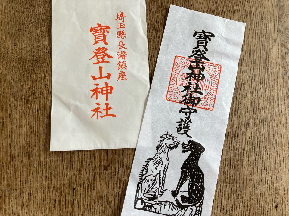 寶登山神社は、お札好きならよく知る神社。 山犬眷属。 残念ながら今は印刷ですが、いいお札を出しています。 ヤマトタケル東征の折、この地で起こった山火事を大きな犬が防ぎ尊を救った、との事から火止山と名がついたと。 (松勇堂 『お犬様の御札』より)