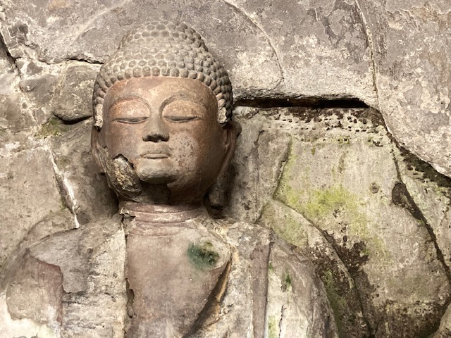 最後は<岩屋寺石仏> 幹線道路の交差点にそびえ立つ17体もの仏像群。 残念ながら風化による剥落が激しいですが、それをも含めて平安末から連綿と続く時間を感じさせてくれます。 繰り返す、というか反復するというか、一本道でない時間の流れを身体で感じることができました。