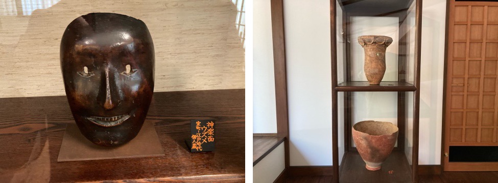 許可を得て撮影させて貰ったこのウズメの面。 料治熊太の『日本の土俗面』でカラーで紹介されている、まさに、二つとないモノ。