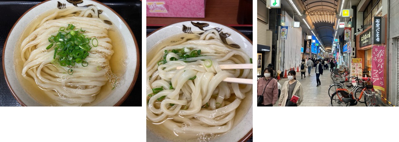 細い商店街を行くと、昼しかやってなかったように覚えた讃岐うどん屋〈いわい〉さんがやってたので「冷あつ」を一杯。 しみじみ旨い。
