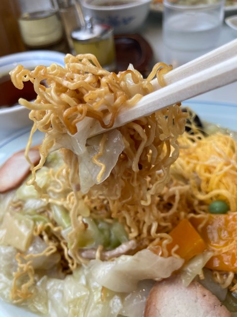 見た目のオイリーさと裏腹に麺はかなりモソモソ。 餡もギリギリ最低限しか掛かっておらず、モソモソを口中で調和させることとなります。
