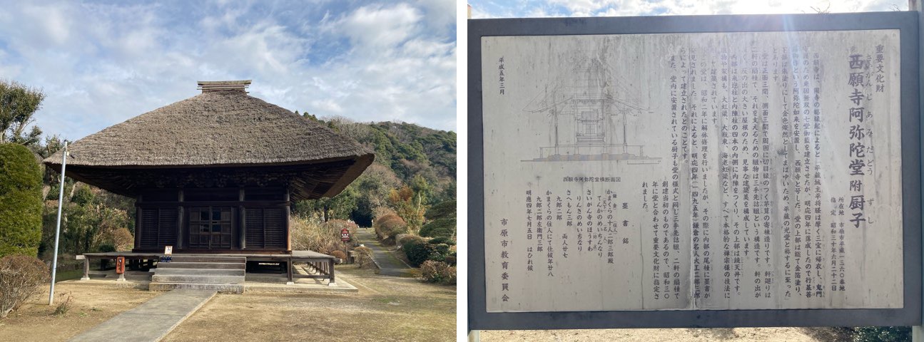 ひとつめは千葉県。 御宿町に道具の査定に出掛けてからの帰り道。 もう市原市に入っていますが、遠くからお堂の屋根が見えただけで只者でない別次元の空気を一帯が纏っているのがわかるようでした。 重要文化財 西願寺阿弥陀堂 明応四年1495年建立の墨書。