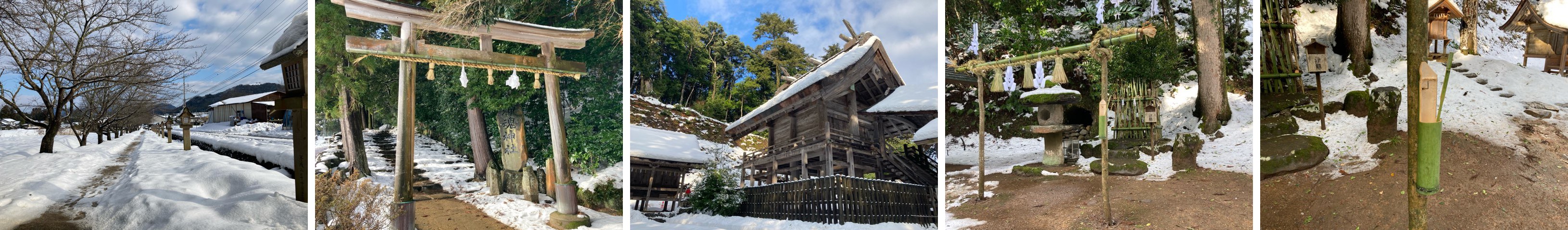 みっつめは島根県。 松江市の大庭(おおば)という出雲国分寺、国府がある地域に建つ神魂(かもす)神社。 ドカンと雪の降った一月終わりにホント偶然立ち寄りました。 朝早かったので、夜に降った雪がまだ汚れておらず神秘的。 石段を登り本殿の前に立つと出雲大社かと見まごうばかりの神々しさ。 最古の木造大社造なんだそうです。 立ち去り難く、雪の中しばらく佇んでおりました。 |